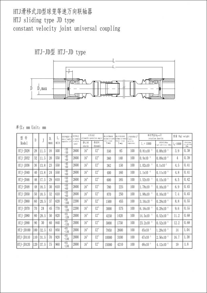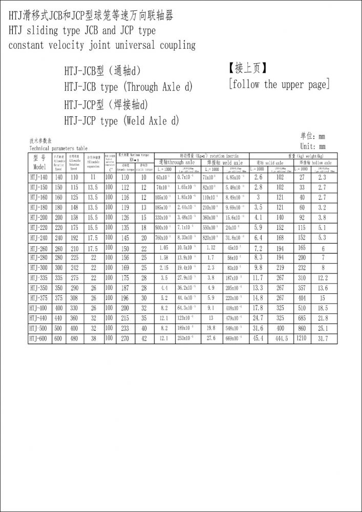 HTJ滑移式型球籠等速萬向聯(lián)軸器